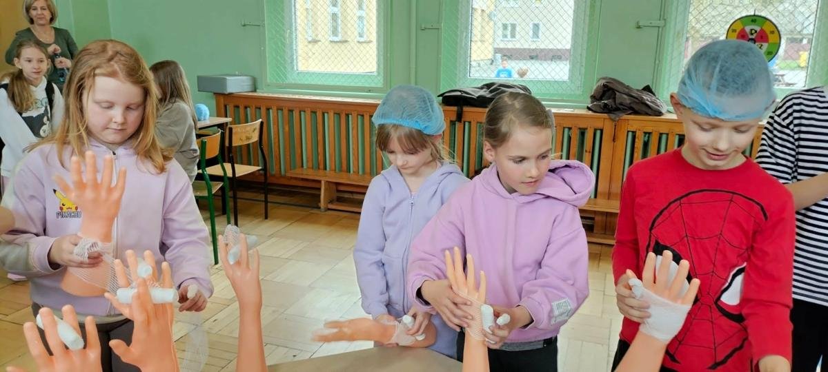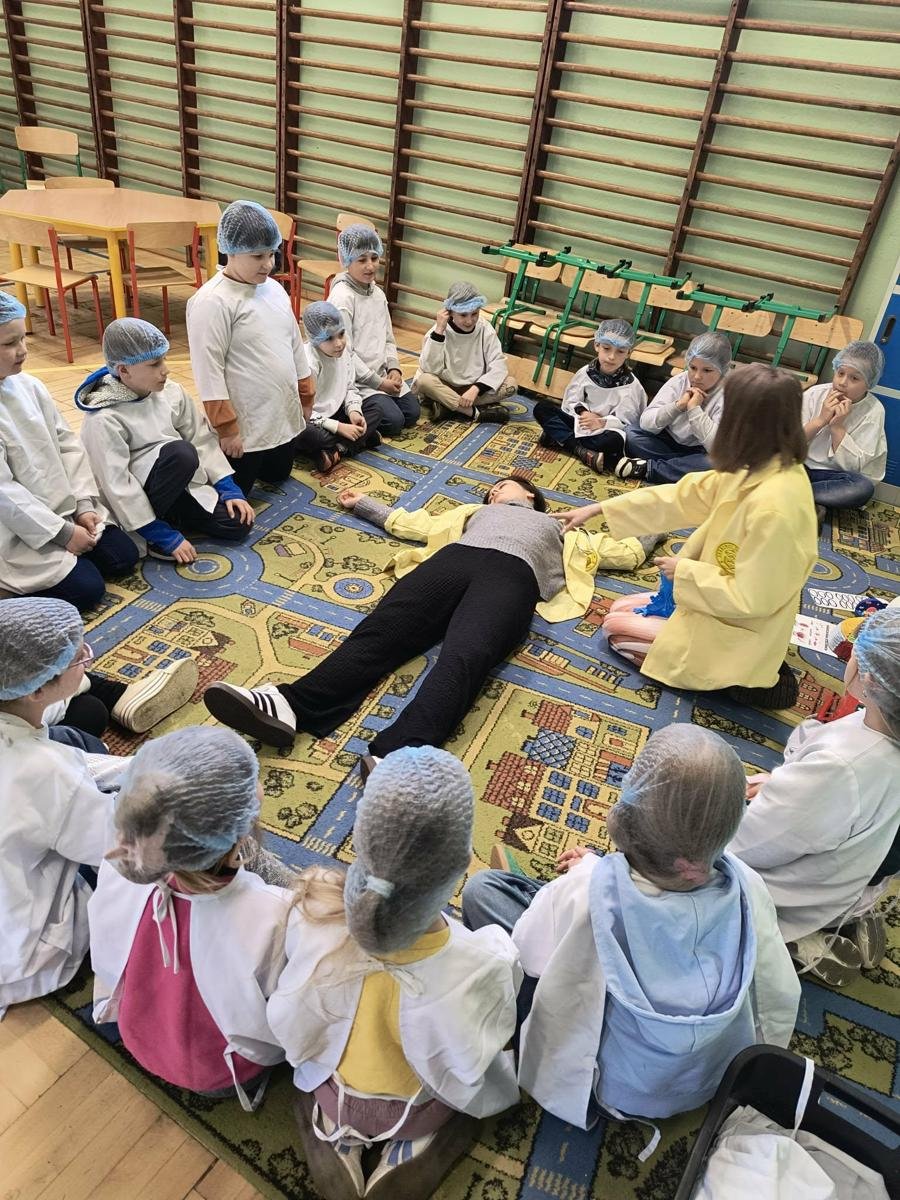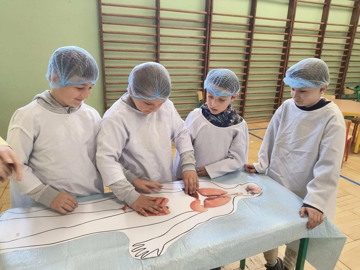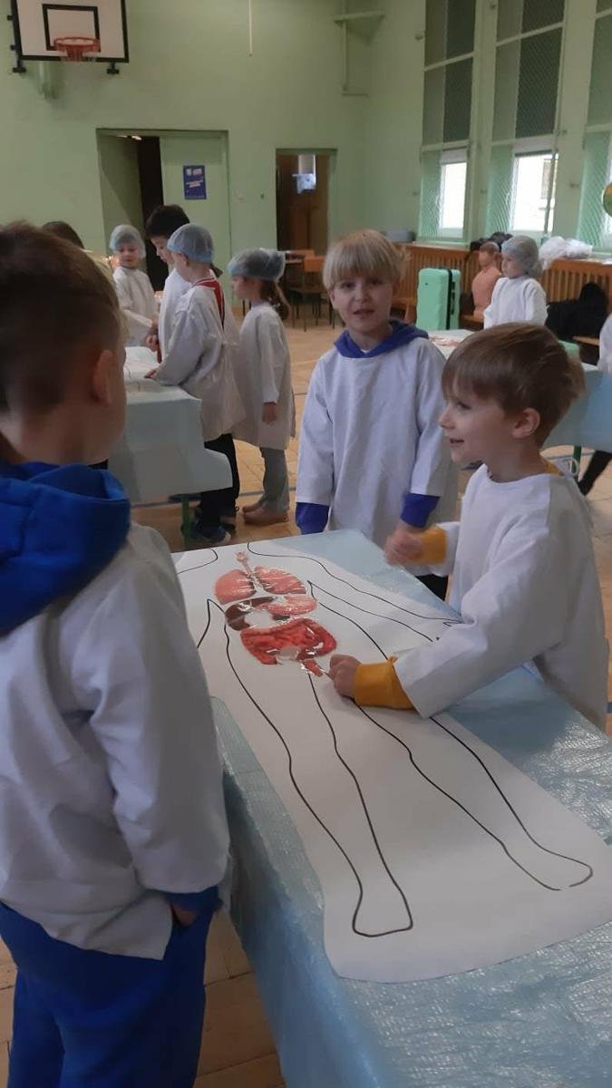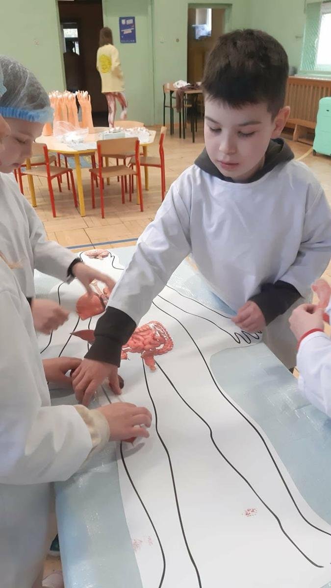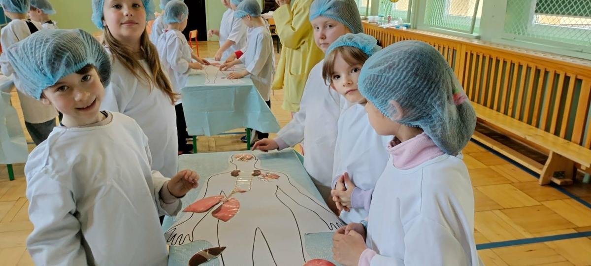 13.04.2026r. uczniowie klas I-III uczestniczyli w inspirujących warsztatach medycznych, podczas których zdobywali wiedzę w angażujący i praktyczny sposób. Dzieci poznawały budowę ludzkiego ciała, odkrywały ciekawostki związane z funkcjonowaniem poszczególnych narządów, miały również okazję wcielić się w rolę prawdziwych chirurgów! W trosce o bezpieczeństwo, w trakcie warsztatów nie zabrakło również bezcennych elementów z zakresu pierwszej pomocy. Zajęcia wywołały u dzieci wiele emocji, ale przede wszystkim dostarczyły solidną dawkę wiedzy o ludzkim ciele i zdrowiu.