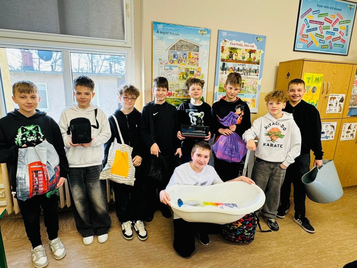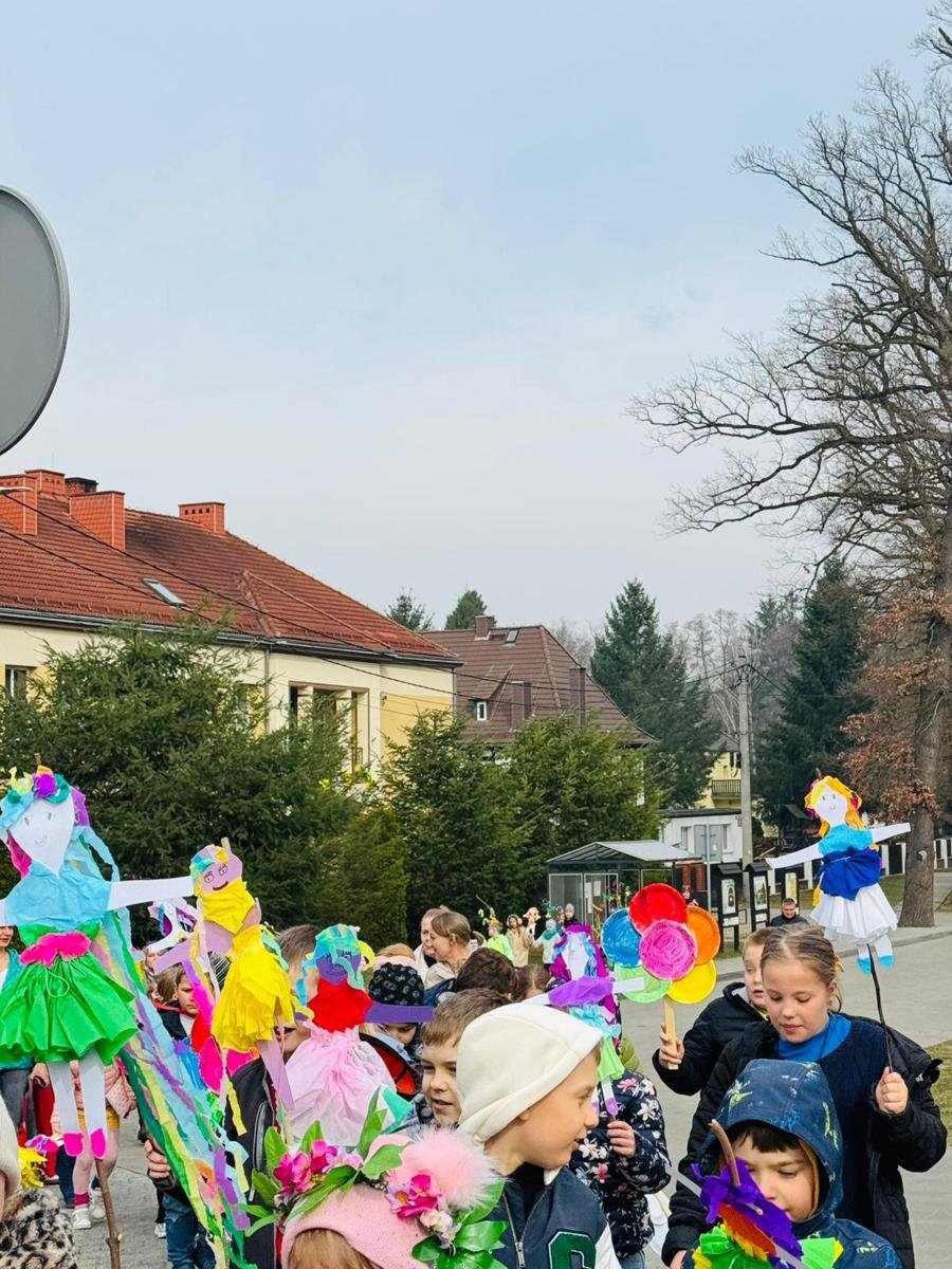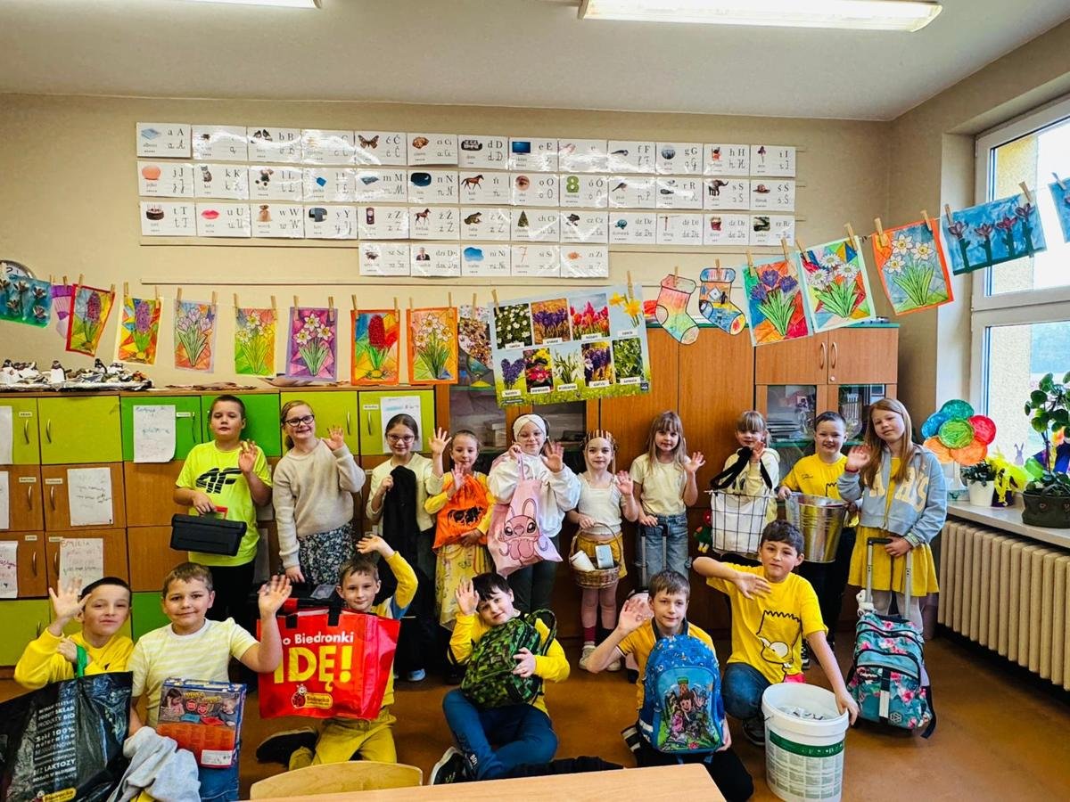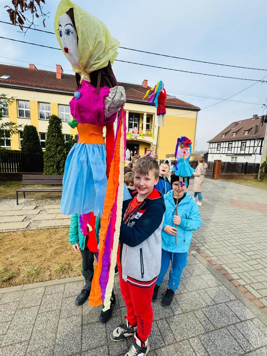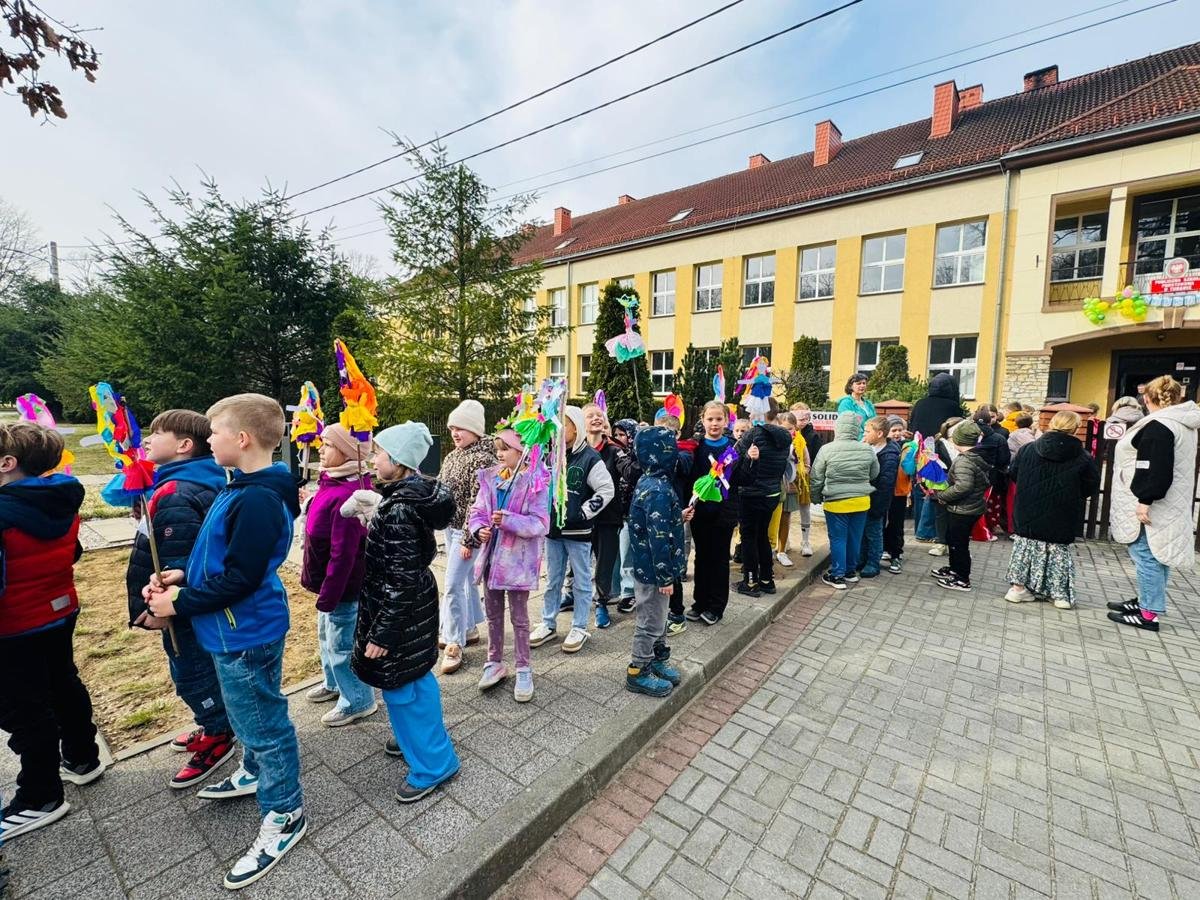 Nie zabrakło również działań na świeżym powietrzu. Klasa 5 godnie reprezentowała naszą szkołę podczas pikniku organizowanego przez Wody Polskie oraz Gminę Turawa, biorąc udział w akcji sprzątania świata. Młodsze klasy natomiast wyruszyły na poszukiwanie wiosny, kultywując tradycję „topienia Marzanny”.