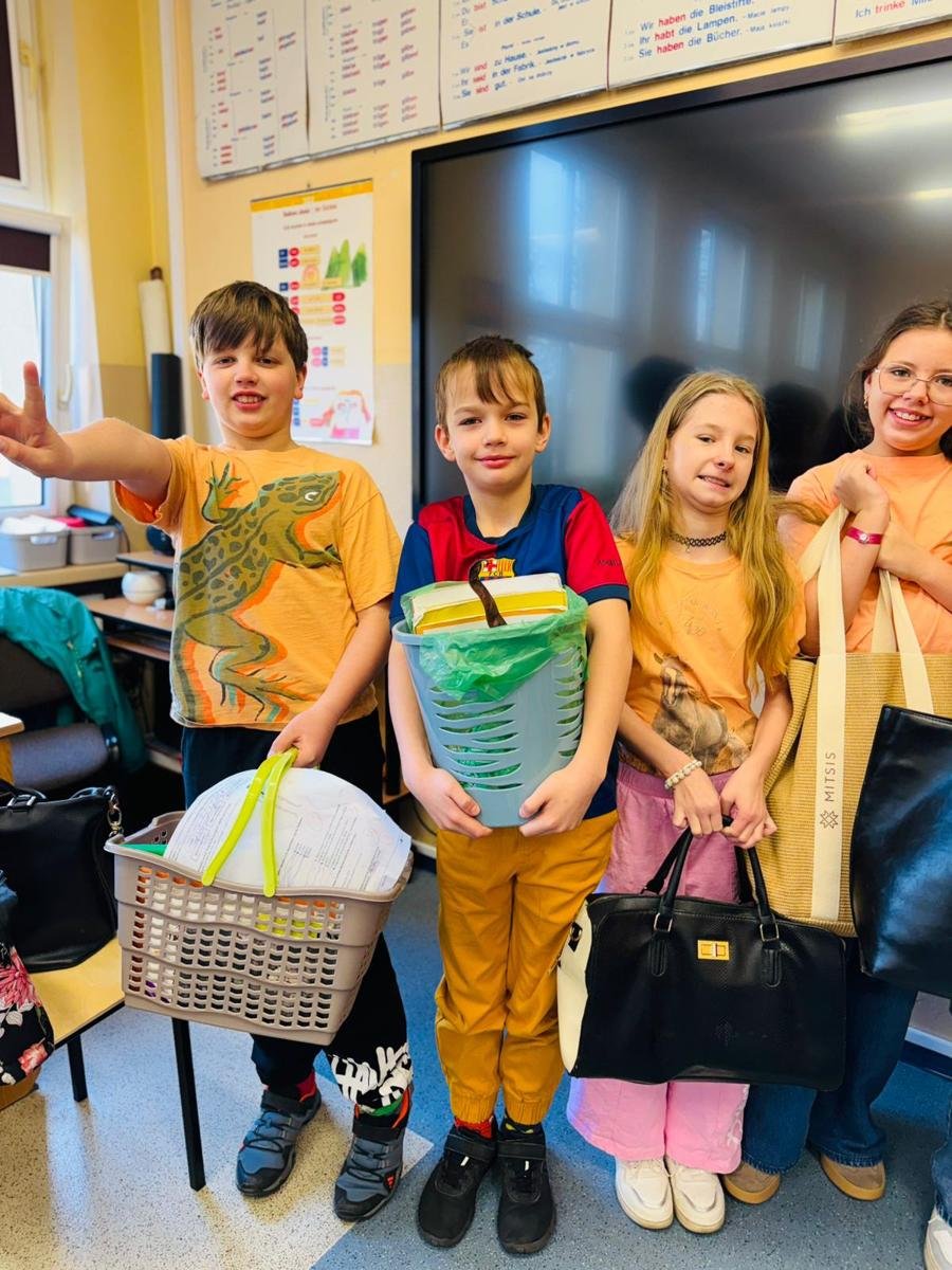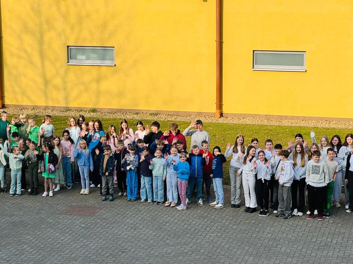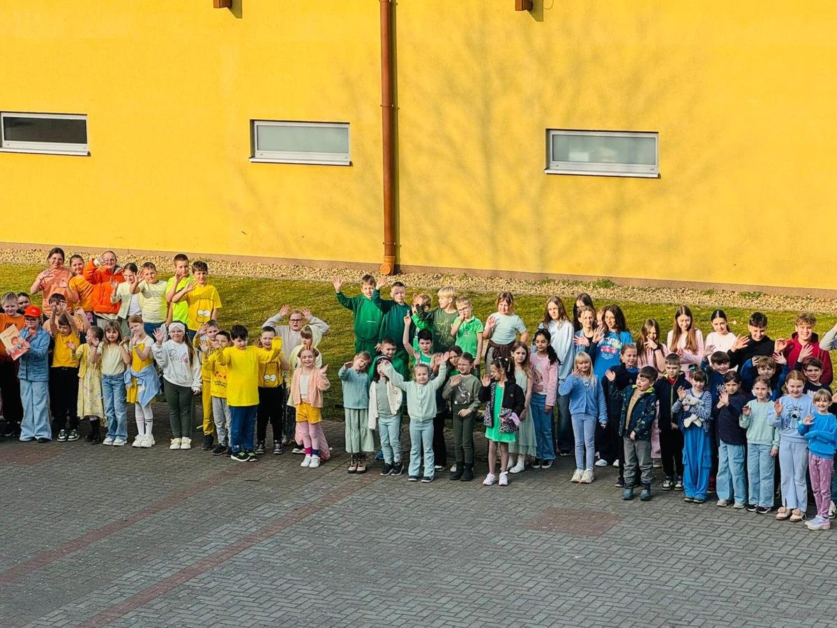 W ramach szkolnej inicjatywy każda klasa ubrała się jeden kolor, tworząc barwną i wesołą społeczność. Dodatkową atrakcją był „Dzień bez plecaka” – uczniowie wykazali się ogromną pomysłowością, przynosząc swoje rzeczy w nietypowych i zabawnych formach.