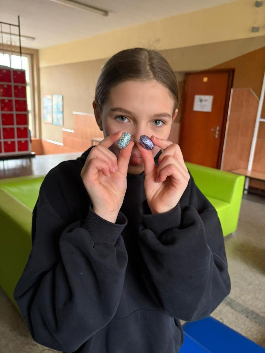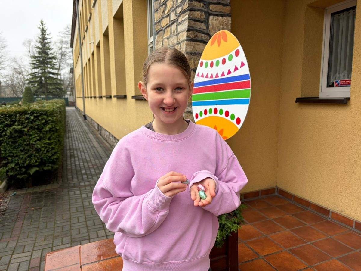 Uczniowie z różnych klas z wielkim zaangażowaniem przemierzali szkolne korytarze i zakamarki, aby odnaleźć ukryte słodkie niespodzianki. Zabawa była pełna emocji – każdy chciał znaleźć jak najwięcej jajek, co wywoływało śmiech, radość i odrobinę rywalizacji. Była to wspaniała okazja, aby wspólnie poczuć wielkanocną atmosferę, a także spędzić czas w nieco inny, niecodzienny sposób.